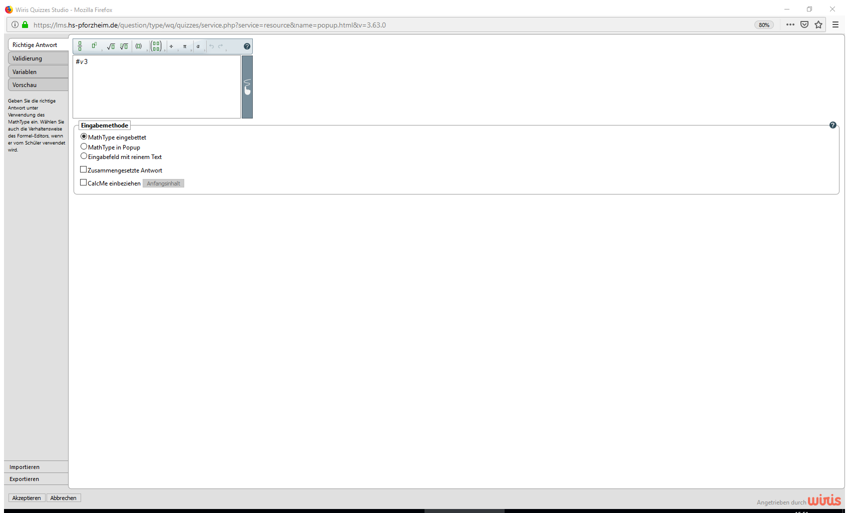 Realisiert als WIRIS Kurzantwort-Frage mit zufälligen Variablen.